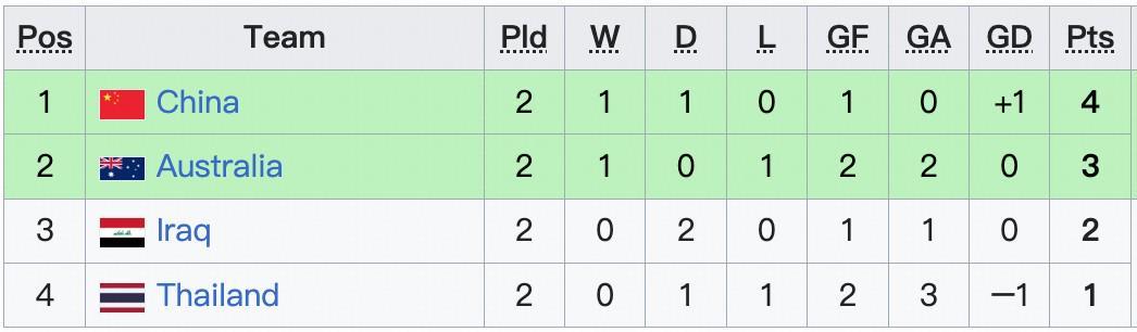 ②若澳大利亚战胜伊拉克:中国队落为小组第二。